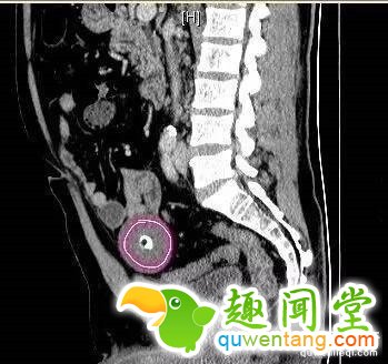 曹男日前到医院接受电脑断层摄影(computed tomography,CT)检查,腹腔有一个肿块,听从医师建议切除。不过当医生定位并伸手取出时,蛋没有与任何血管、神经或组织有沾黏,独立存在患者体内、自由移动。胃肠外科医生石磊表示,形状类似椭圆形玉石,外表圆润光滑。