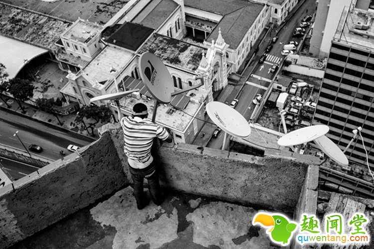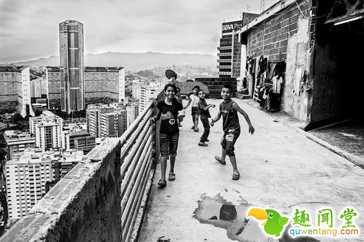图为,一群贫困孩子正在顶楼肆无忌惮的玩耍,这是他们每天游戏的地点。虽然环境很一般但是在这里,风景确实很好,而且也很少有人管。