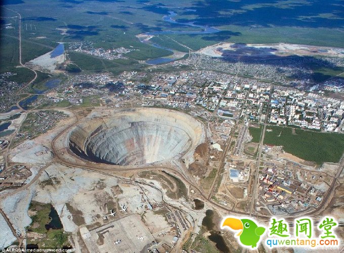 这个巨大的钻石矿有524米深,直径约为1609米,火山口一样的形状使它看上去仿佛被陨石砸中一般。