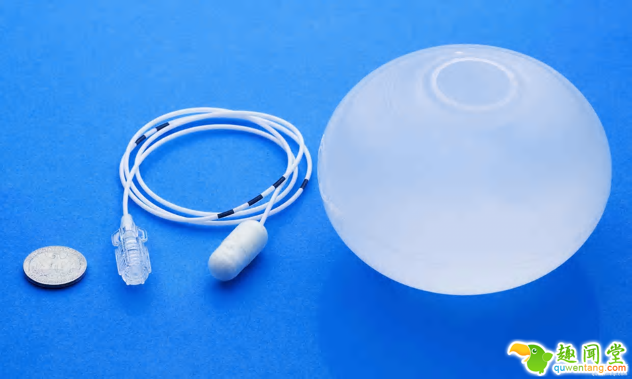 目前市场上最先进的医疗胃气球是下图这个东西,基本操作方法和口服胃气球类似,但是由于技术限制,最先进的医疗胃气球也不能自行排出体外,一般需要利用医用内窥镜进行手术移除: