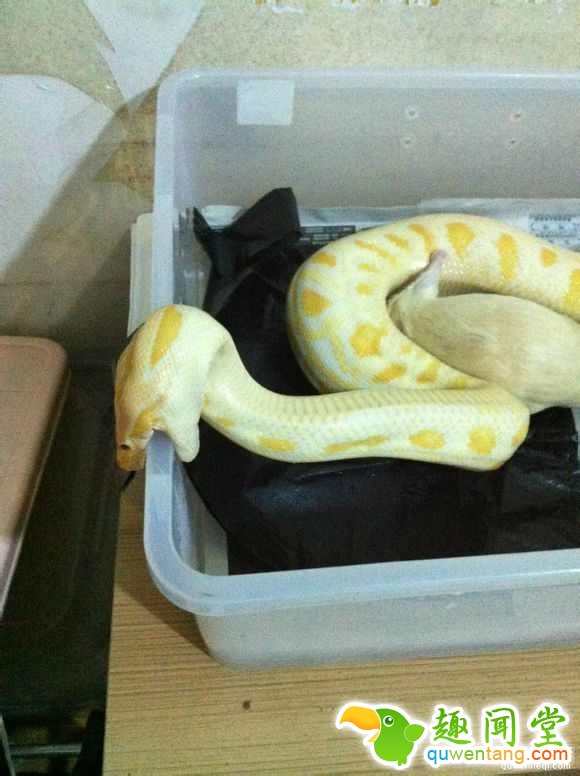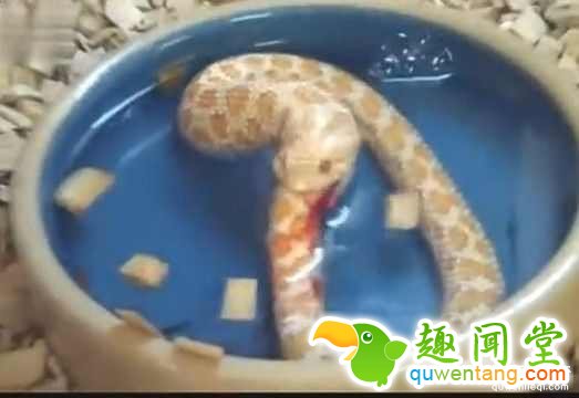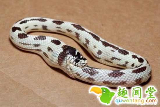 据管理员说他在动物园拍到了这只蛇吃自己尾巴的照片。这是一种罕见但确实存在的情况。一些“饭量”很大的蛇如果长时间找不到吃的东西就可能把自己的尾巴误以为是食物。