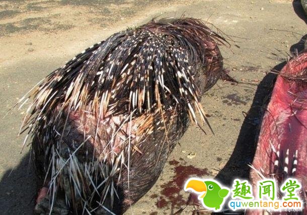 图中的就是这只不幸的豪猪,身上的刺已经掉了很多