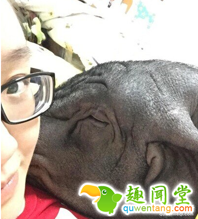 北京一姑娘在网上晒出一张与一只叫“五花”的宠物猪的合照惊呆网友