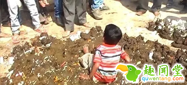 恶心风俗:印度村民用牛粪为孩子洗澡!