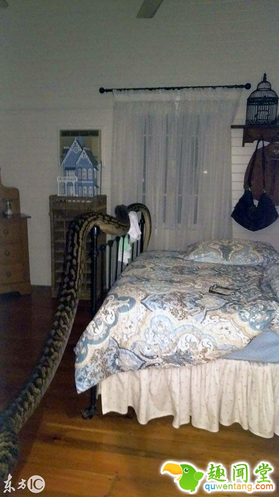 一觉睡醒发现房间里居然有一条16英尺(约4.9米)巨蟒正从背后目不转睛地瞅着她(图片来自东方IC)