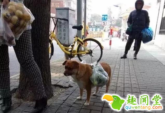 狗狗主动帮主人背菜,像个小骡子一样,却是别人家的狗??!