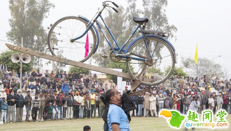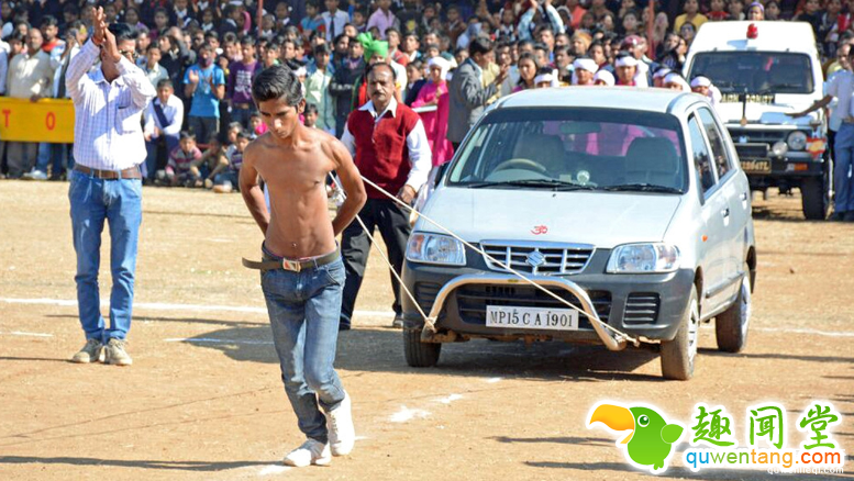 印度民族的开挂表现,举世闻名。尤其是他们的阅兵表演让人目惊口呆。其次,他们的火车超载也让人忍俊不禁。但,这些都已经过时了,印度人民在开挂的道路上已经前进了一大步。本图是一名18岁的男子用肩胛骨拖起了重达1050公斤的汽车。