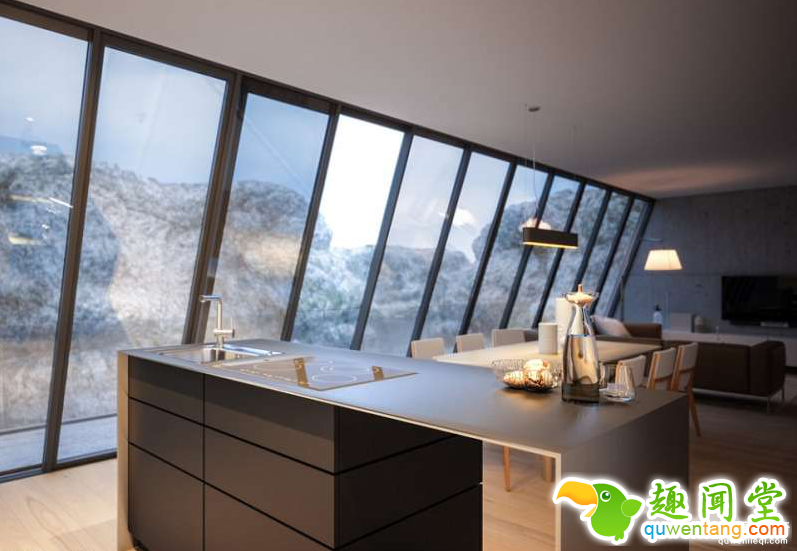 这个怪诞诱人的设计方案来源于Matthias所在的建筑公司「Lichtecht」的内部项目。房屋外观呈现三角形,四周使用大面积玻璃当作围墙,在悬崖边不用担心隐私问题,又有充足的光线射入。也许我们永远也不会住进这种奇特的房子,但不得不说,这样的设计真的非常吸引人。
