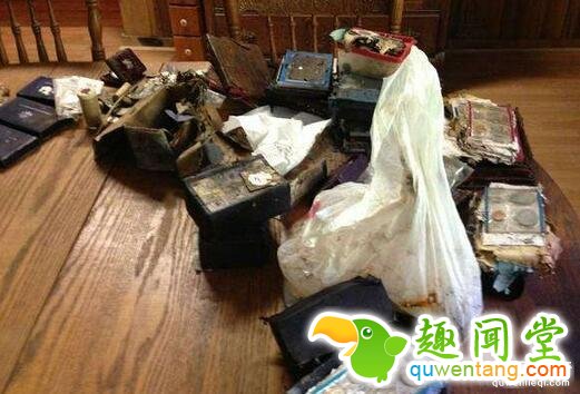 ▼他开始慢慢挖掘这个神秘的柜子,发现了很多钞票和硬币。