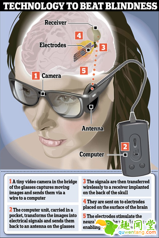 该名女患者的主治医生尝试把一台微型摄影机植入她的大脑,这项技术主要是靠大脑的视觉反应,所以一开始对于眼睛并未有什么影响。然而经过6周测试,患者成功通过大脑视神经清楚接收到医生所发送的图像,这项技术随即在科学界引起不小的轰动。