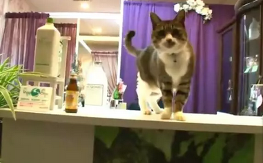 这只17岁的老喵则是一家按摩店的第一员工