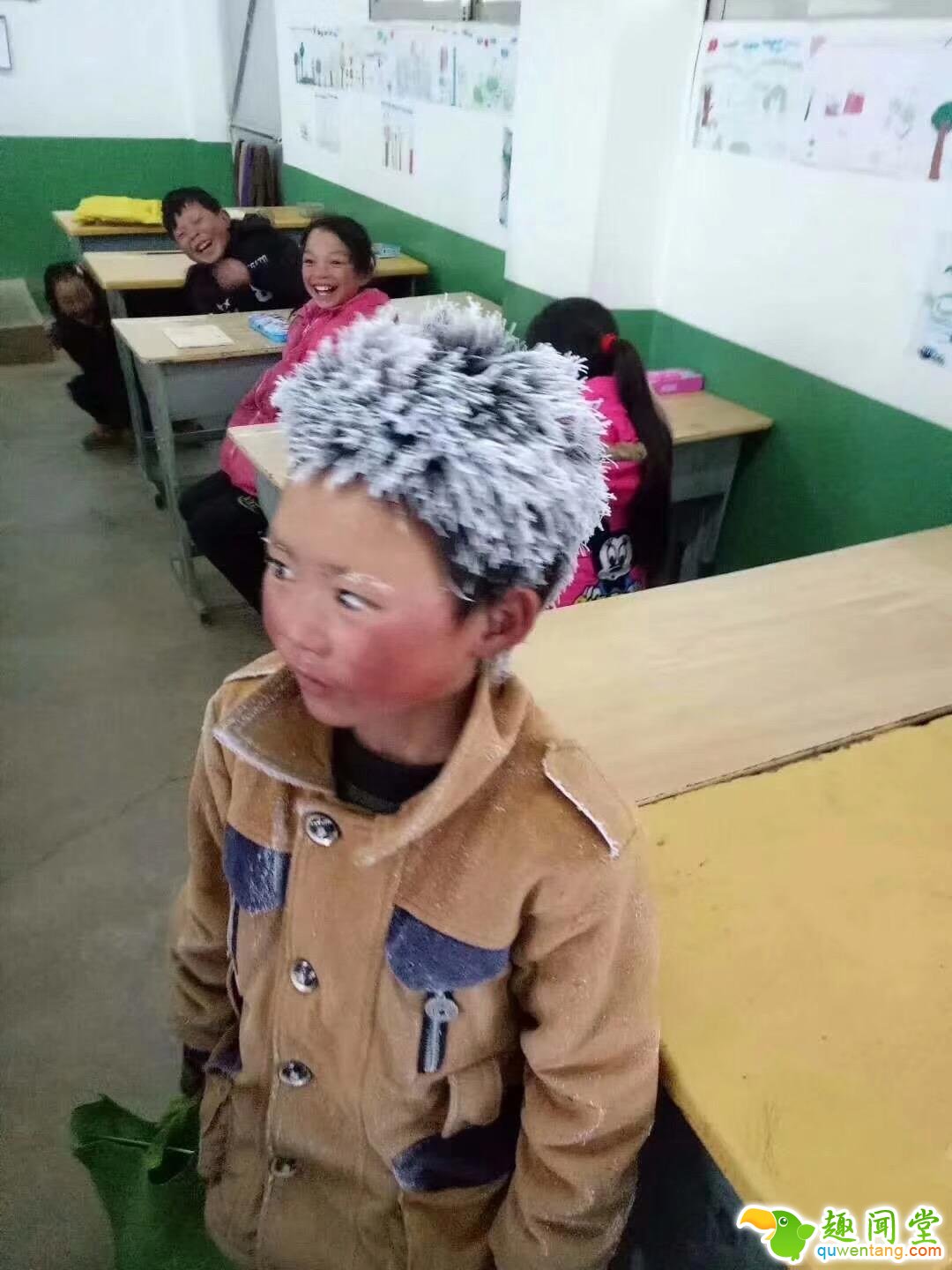 “当天早上气温是零下九度,是期末考试的第一天,气温是在半个小时内降下来的,他家离得远因此到教室后头发都沾满了风霜。小孩子比较可爱,到班级后做了个怪怪的鬼脸,引起了班级同学的大笑。”付校长说。