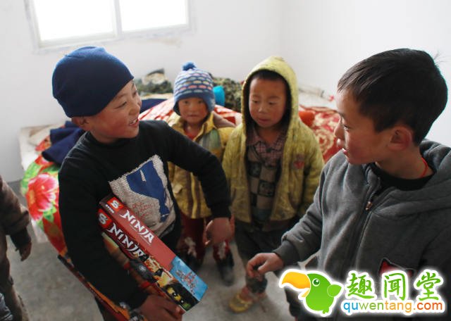 2月2日,在申果乡沙苦新村的外公家中,吉觉吉竹拿出爱心人士送的玩具和小伙伴们分享。