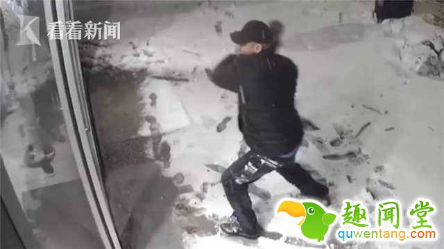 之后,小偷便拿起一块砖头砸碎了一家服装店的玻璃窗户,破窗而入偷走一堆男士上衣和裤子后扬长而去。