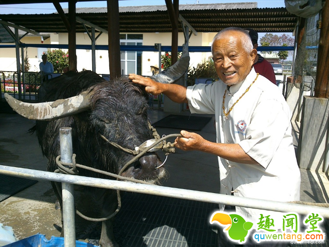 牛牛高龄32岁,换算人类的年纪是117岁,堪称「牛瑞」,她也是2010年「老牛之家」开园时首批入住的老牛,饲养员邱继传说,牛牛陪伴游客度过6个年头,许多粉丝都很爱护她。(牛牛与梁平合照)