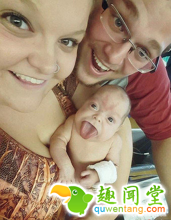 美国宝宝天生有成人舌头,一天窒息近百次!术后第一次微笑
