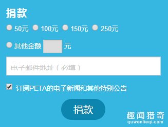 PETA中国,捐款页面