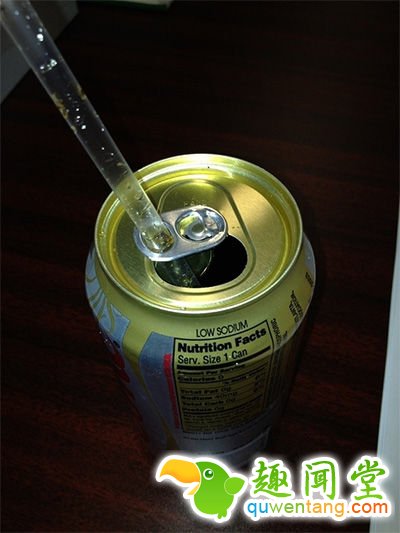 6. 避免吸管掉进易拉罐的最好方式是利用起来拉环。