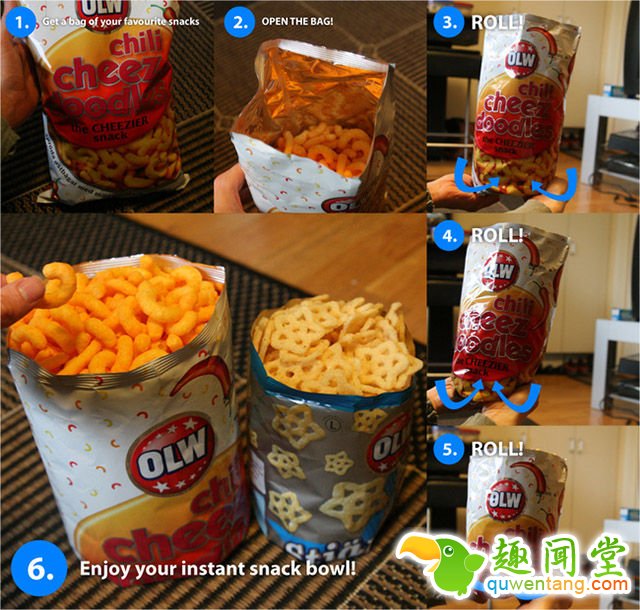 7. 吃零食总是把手弄脏?把包装袋卷起来!