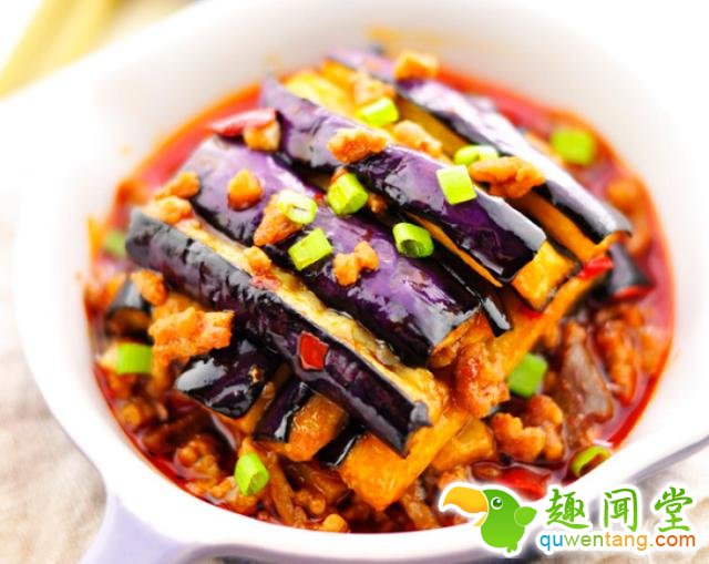 【材料】茄子3根,肉末100g,蒜6瓣,姜3片,酱油一勺,醋一勺,盐、糖适量,香葱少许