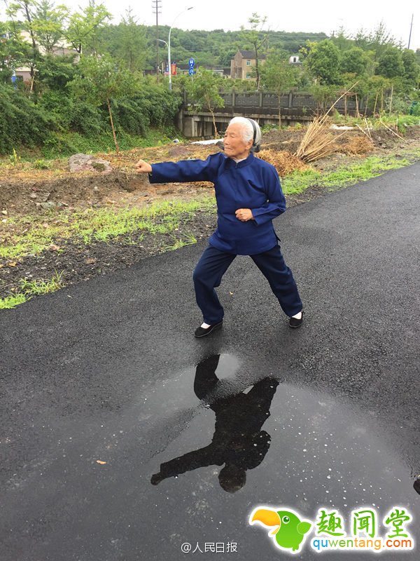 浙江宁波宁海力洋镇,94岁的功夫奶奶张荷仙,4岁开始习武,近90年来勤练不辍。