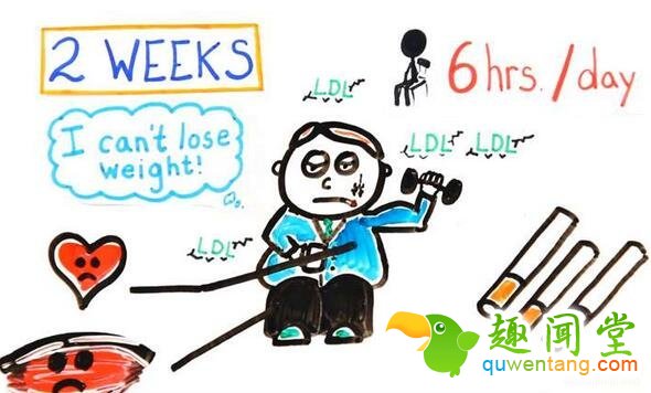 ▼如果连续两周,每天久坐长达6小时,胆固醇就会上升,体脂肪也会上升,而肌肉开始松垮,最终阻碍血液循环系统。