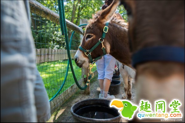 Stiert先生的老伙计Flint是一头四岁的灰驴子,它靠近了一名穿着粉色T恤的女性。她作出想要亲吻它的样子。Flint的回应则是将它的头靠在了她的肩膀上。