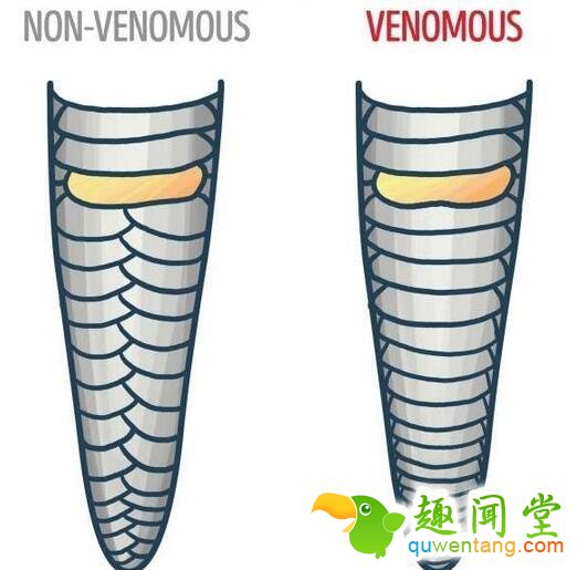 ▼如何识别毒蛇:不管蛇有没有毒,离得远远的就对了。不过真的无处可逃时,懂得分辨也很重要。蛇尾巴上,腹部那面的鳞片是两片排列的话,就是无毒蛇;竖瞳一般是毒蛇,圆瞳蛇一般无毒;毒蛇头颈区分明显。虽然也有很多例外,但记住这几条,大多数时候足以判断了。