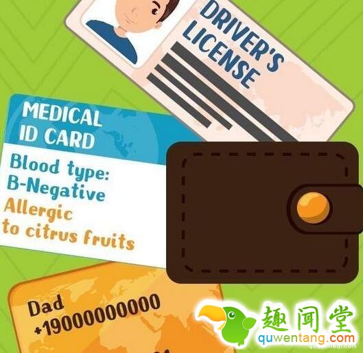 ▼随身携带能够验证身分的证件,还有必要的医疗讯息:医疗讯息中至少应该包括血型、过敏类型等等,发生意外时施救的人能够快速提供救援。还要写紧急连络人的电话,这也很重要。