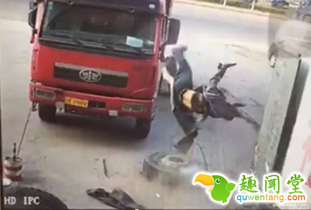 轮胎突然爆炸,男子被震飞
