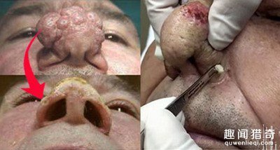 这位病人其实是得了红斑痤疮,俗称酒糟鼻,这种慢性炎癥会导致血管充血、丘疹,甚至引发大面积类似粉刺的疙瘩。他会导致血管充血、丘疹,有时还会引发类似粉刺的疙瘩在脸部大规模爆发。红斑痤疮通常长在两颊和鼻子等部位,但有时也会长在额头和下巴处。然而,遗憾的是到目前为止人类仍未了解红斑痤疮的病理,研究者也无法挖掘出导致红斑痤疮的真正病因。(挤大批黑头没想到是长这样的,有够惊悚的啦!)