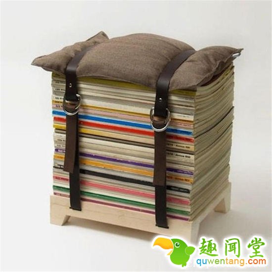 1. 旧杂志的堆叠,一张完美的小板凳。