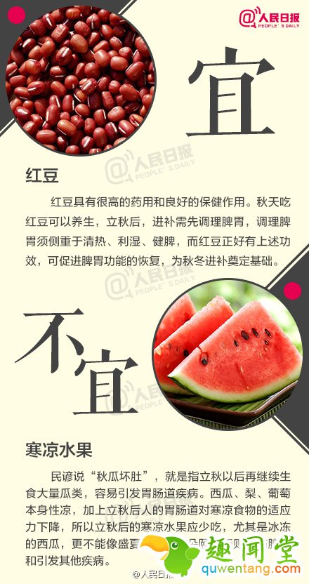 3. 不宜:寒凉水果;宜:红豆;