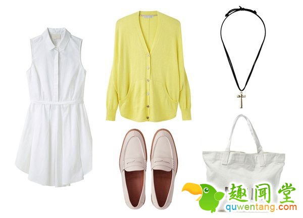 举个例子吧,这件白色的衬衫裙,我觉得非常百搭,看到它脑海里立刻想到上百种搭配??梢院峥绱合那锶荆ǔ匀魏纬『?,简单大方又得体。正式一点可以加腰带,高跟鞋;休闲一点,毛衣开衫都可以。