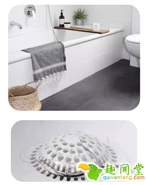 洗澡的时候,用旧丝袜包住下水道的口,就会把所有的头发都拦截下来啦!