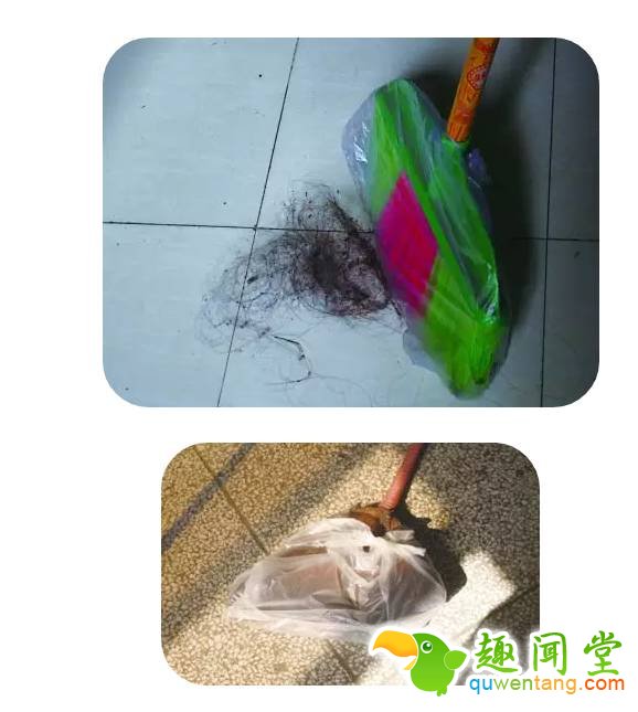 用塑料袋包在扫把或扫把上,在有头发的地方滚几圈,头发会吸附到塑料袋上。