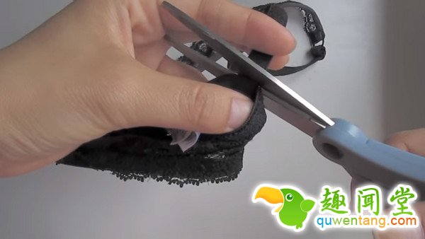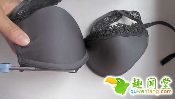 ▼第四刀:将左边内衣背带沿着内衣钢圈边剪下。