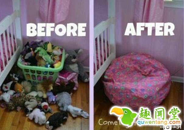 如果你的孩子的玩具到处都是,那就做一个豆袋出来,当一个漂亮的存储箱。