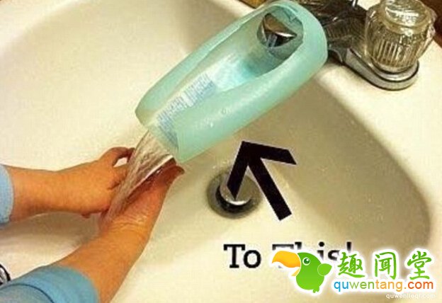 洗手也是,把废弃的洗发乳瓶子剪开套在水龙头上能避免把水洒的到处都是。
