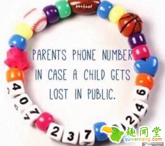 一个家长用他们的手机号码做了一个手镯,让孩子戴在手上,再也不会忘记了。