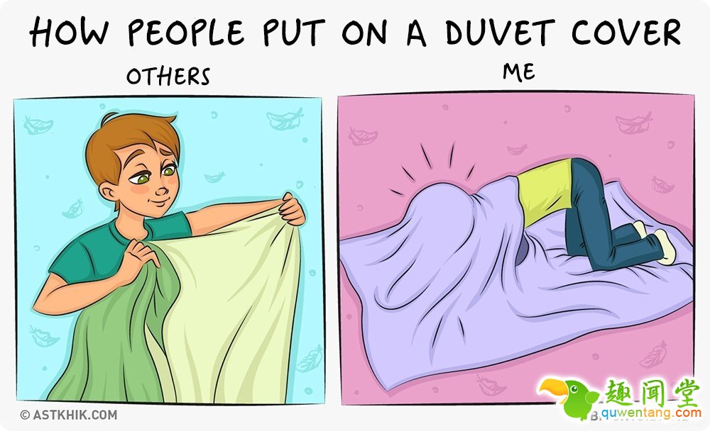 套个床单都像在打仗一样。