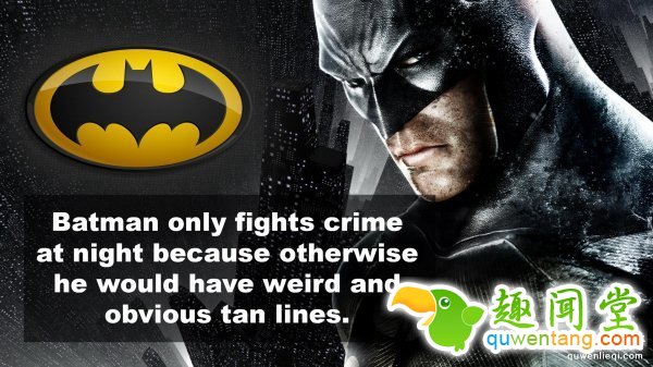 8. 蝙蝠侠只在晚上打击犯罪,因为要是他白天出没的话他脸上会留下很奇怪的晒痕。