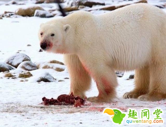 7、成年的北极熊只会吃猎物的皮和脂肪,之后把肉留给小孩吃。