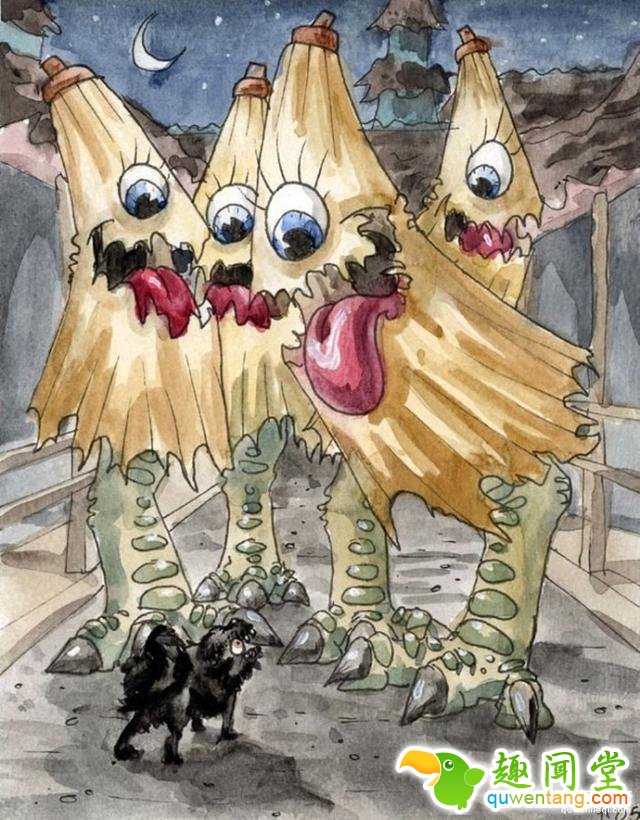15、在日本有一个这样的传说,如果把雨伞躺着放长时间不管的话,它会变成单眼、吐舌、单脚、穿着下驮的妖怪唐伞小僧。