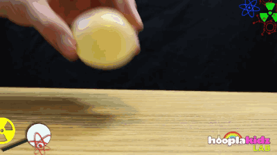 结果就得到了一枚不会碎的弹力蛋!
