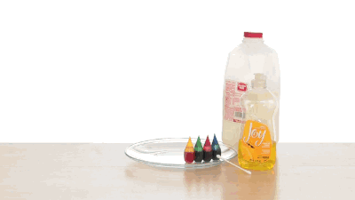 牛奶、盘子、食用色素(颜料也可以)