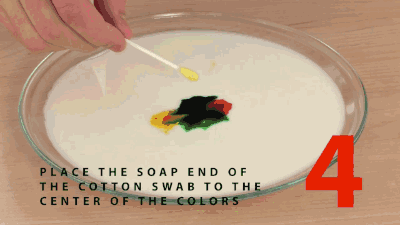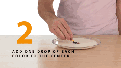 第二步:在牛奶中间点上色素