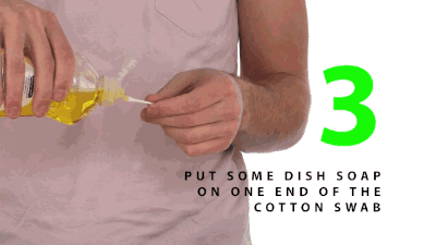 第三步:在棉签上倒一些洗洁精