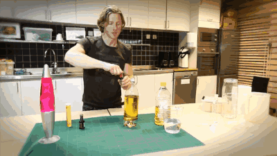 你需要准备:植物油、水、食用色素、泡腾片