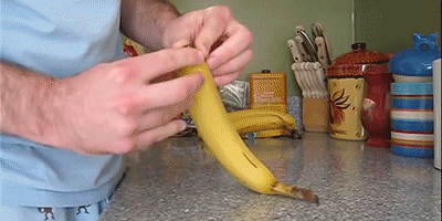 9.捏香蕉的底部并拉,如果你将茎拉坏。